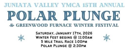 The Juniata Valley YMCA’s annual Polar Plunge is back on Saturday, January 17th at Greenwood Furnace State Park. It all kicks off at 11am with winter fest, then the 5 mile trail race will be at 1pm and the polar plunge will begin at 2:30pm.